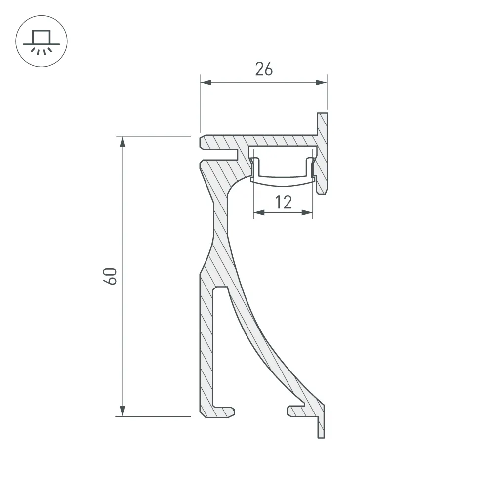 Анодированный профиль 2м ALU-Wall в комплекте с матовым экраном, для установки в стены. Для лент и линеек шириной до 12мм.
