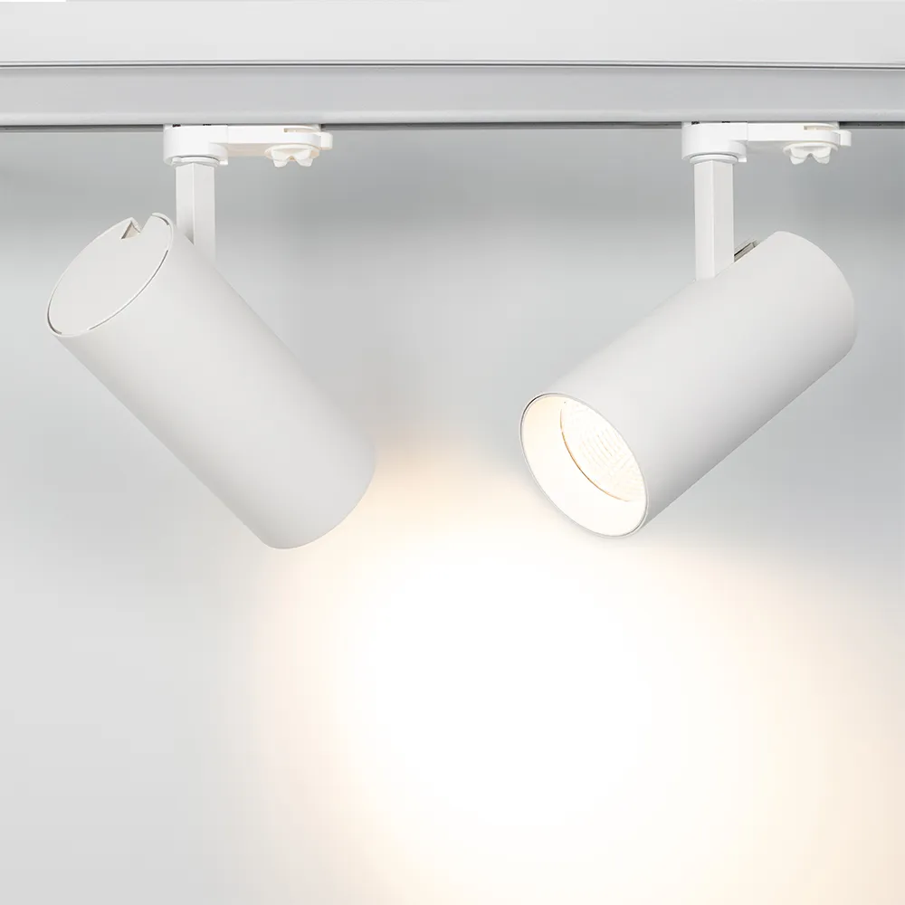 Трековый светильник 15Вт, белый круглый корпус, белая вставка, металл.