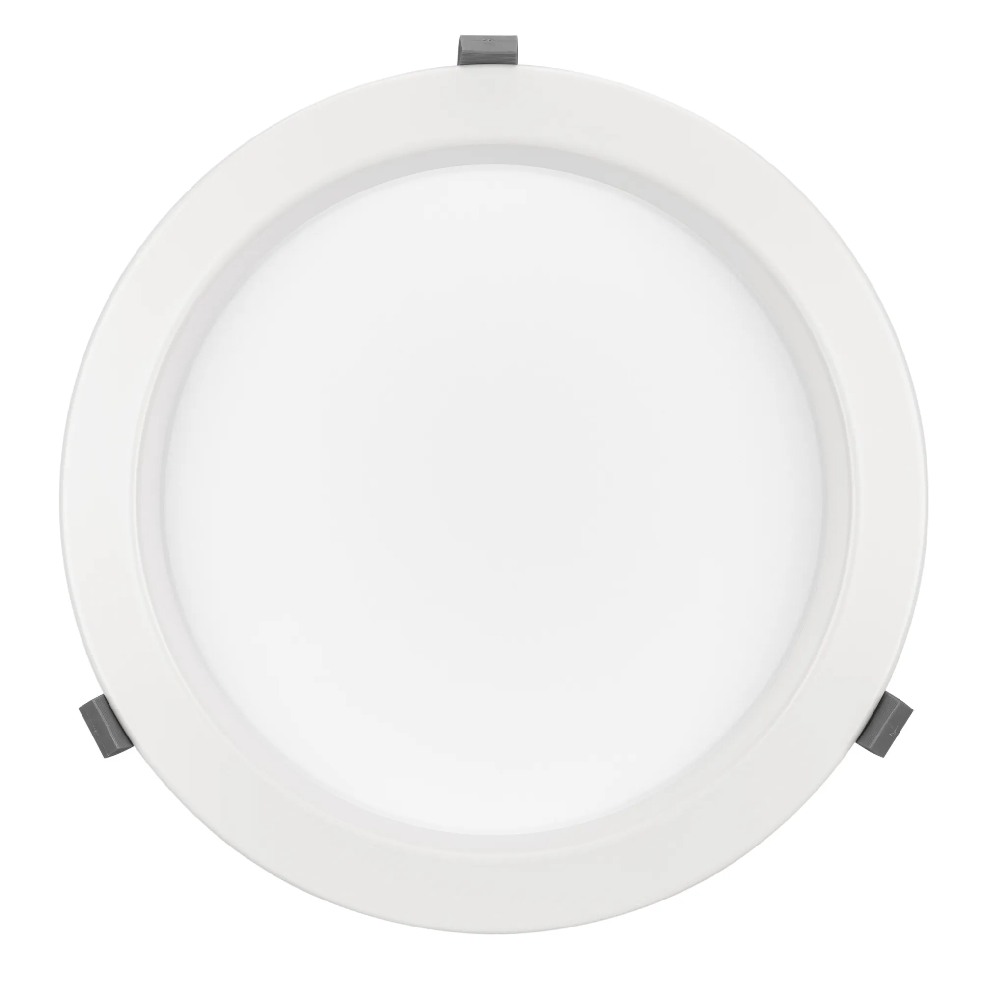 Встраиваемый светильник "Даунлайт" 40Вт. Цвет свечения БЕЛЫЙ 6000К. Световой поток 3880лм, угол 90°, CRI>80. Белый корпус. Питание AC220-240V. Габариты: Ø280х94мм, врезное отверстие Ø240-255мм. Драйвер в комплекте (23-40V, 1050mA).
