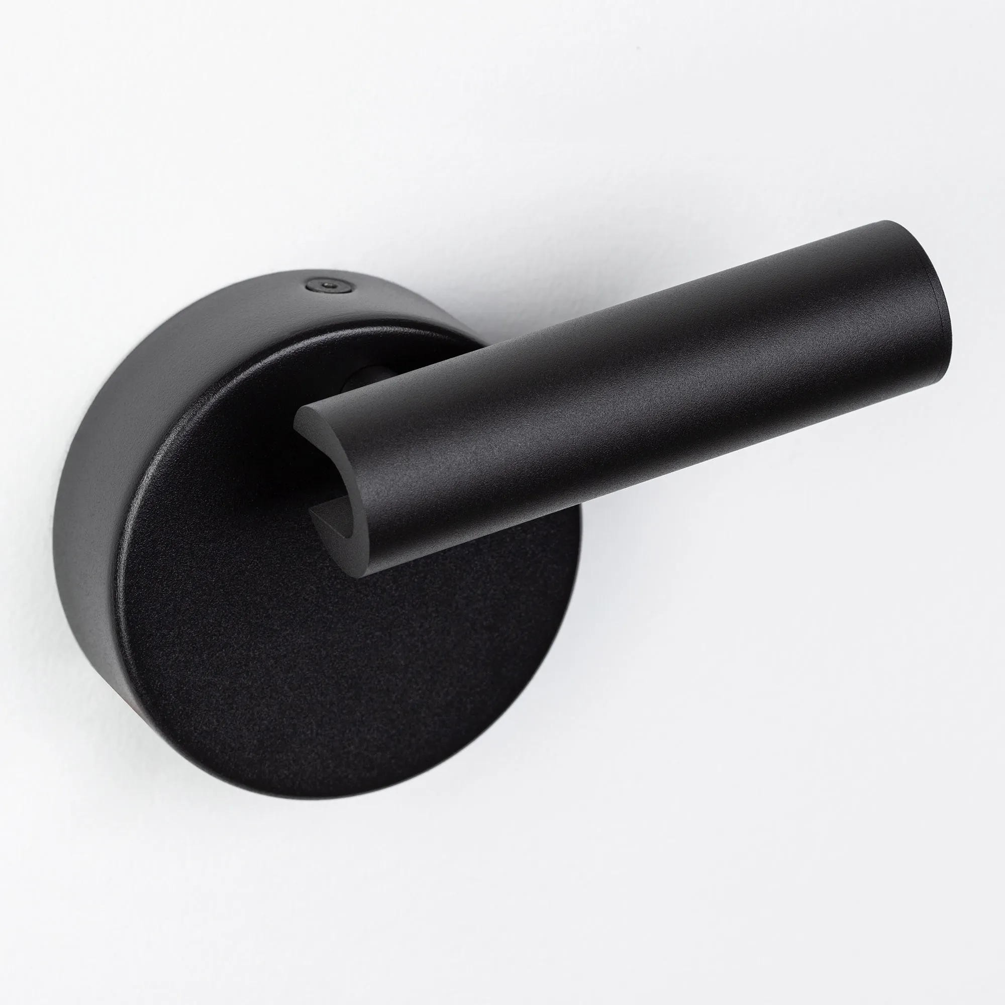 Накладной настенный светильник 3Вт, черный алюминиевый корпус без кнопки включения. Цвет ТЕПЛЫЙ БЕЛЫЙ 3000K, св.поток 200лм, CRI(Ra)>80, угол 20°.Размер Основание Ф90x31мм, Светоизлучатель Ø30×110 мм.. IP20. Питание AC220-240V, 3Вт, встроенный драйвер 2,5-4,5В, 700 мА.