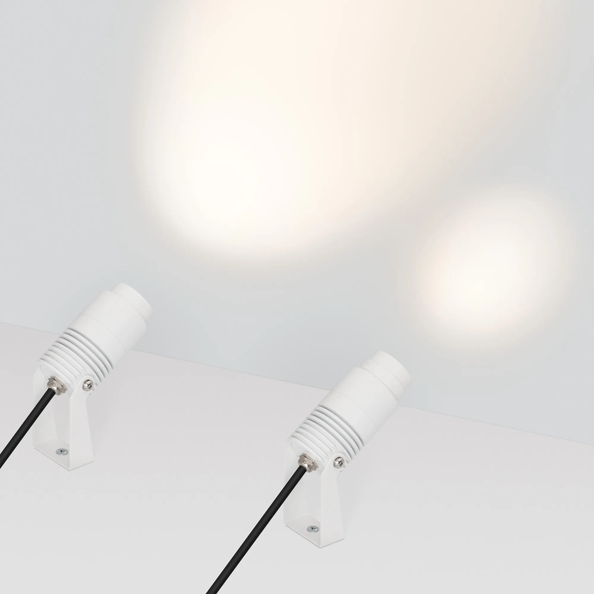 Уличный светодиодный прожектор, мощность 8Вт, регулируемый угол освещения 10-40°. Цвет ТЕПЛЫЙ 3000К, световой поток для угла 10° 240 для угла 40° 420лм. Влагозащищенный корпус IP67 - белый алюминий, экран из закаленного стекла. Угол поворота корпуса в вертикальной плоскости 135°. Питание 230В, мощность 8 Вт. Размеры DxH - Ø52x103мм. В комплекте 1м провод.