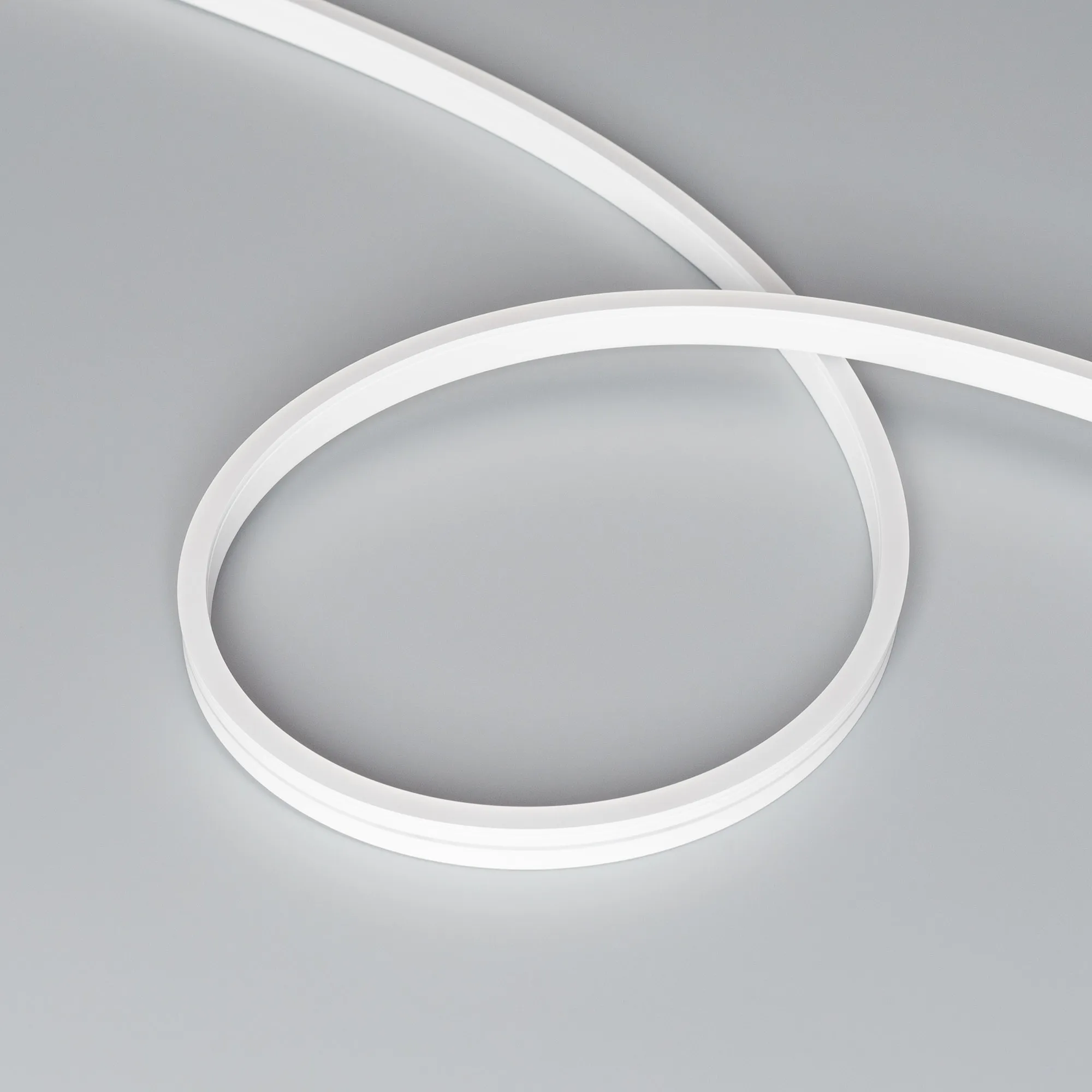 Гибкая герметичная лента (неон серии MOONLIGHT), сечение 6×12 мм. Светодиоды SMD 2835 120 шт/м. Цвет свечения ТЕПЛЫЙ БЕЛЫЙ (2300 К), индекс цветопередачи CRI>90, световой поток 250 лм/м, угол излучения 112°. Мощность 9.6 Вт/м, питание 24 В. Класс пылевлагозащиты IP65. Размеры 5000×6×12 мм. Мин. отрезок 50 мм. Горизонтальный изгиб SIDE, минимальный радиус изгиба 30 мм. Вывод кабеля с двух сторон. Катушка 5 м. Цена за 1 м. Гарантия 3 года.