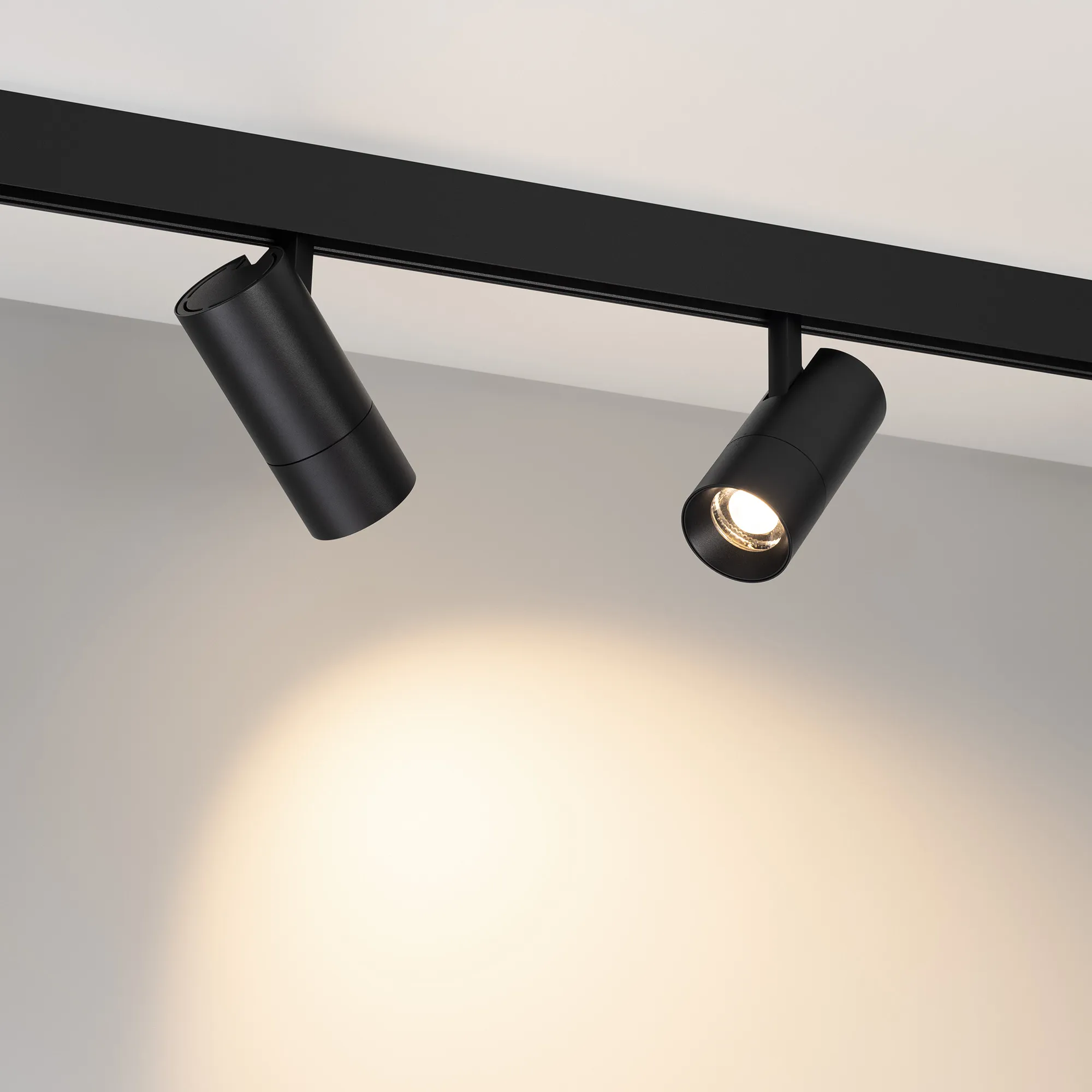 Светильник для магнитных треков MAG-ORIENT шириной 26 мм, с управлением по DALI. Мощность 15 Вт, св. поток 1100 лм, 73 лм/Вт, дневной 4000 K, CRI>94, угол 34-60°, напряжение питания 48 В. Черный фигурный корпус из металл, экран поликарбонат, степень защиты IP20. Размеры LxWxH 204x66x211 мм.