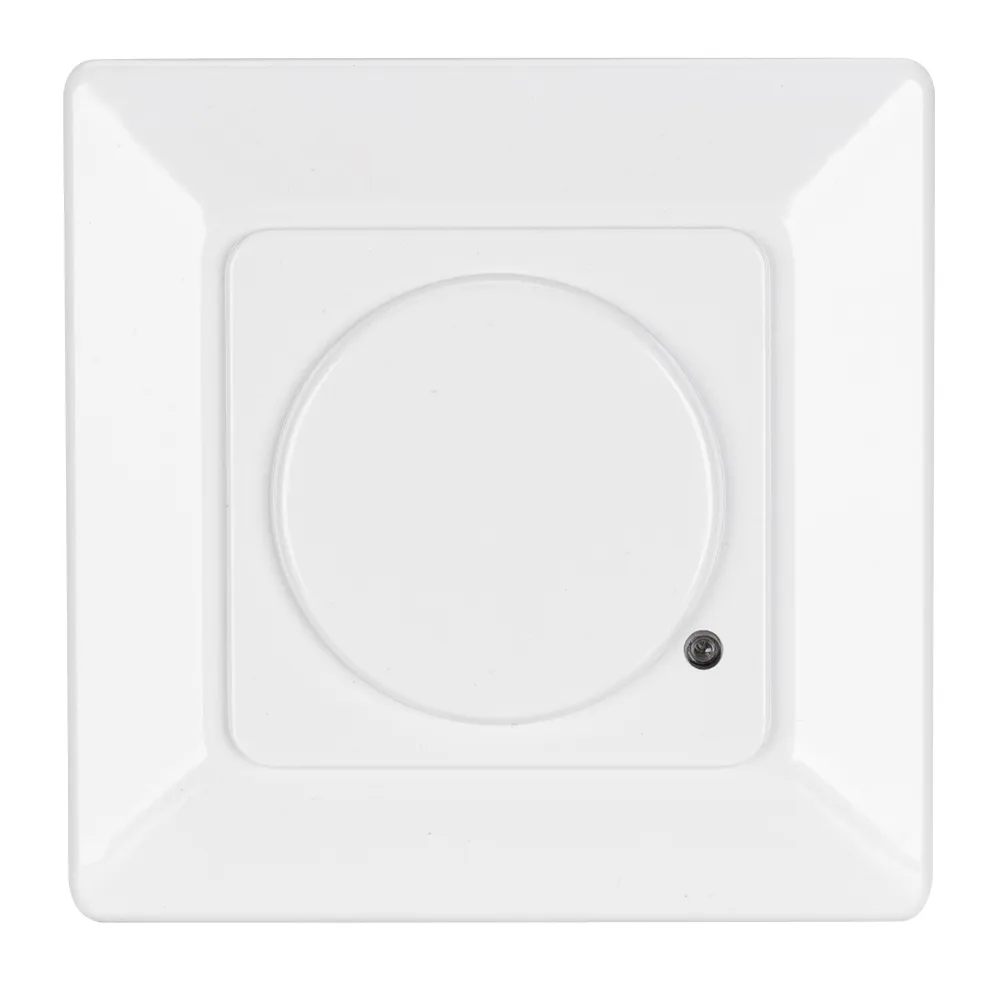 Микроволновый датчик движения, совмещенный с датчиком освещенности. Предназначен для встраивания в стену. Угол обнаружения 180°. Может срабатывать через двери и тонкие стены. Настройки: время отключения (10 c – 12 мин), радиус зоны срабатывания (5 - 15 м), освещенность (0,1 - 2000 люкс). Максимальная нагрузка 1200 Вт (для ламп накал-я и галогенных), 300 Вт (для светодиодных ламп), размеры (LxWxH) - 80x80х32 мм.