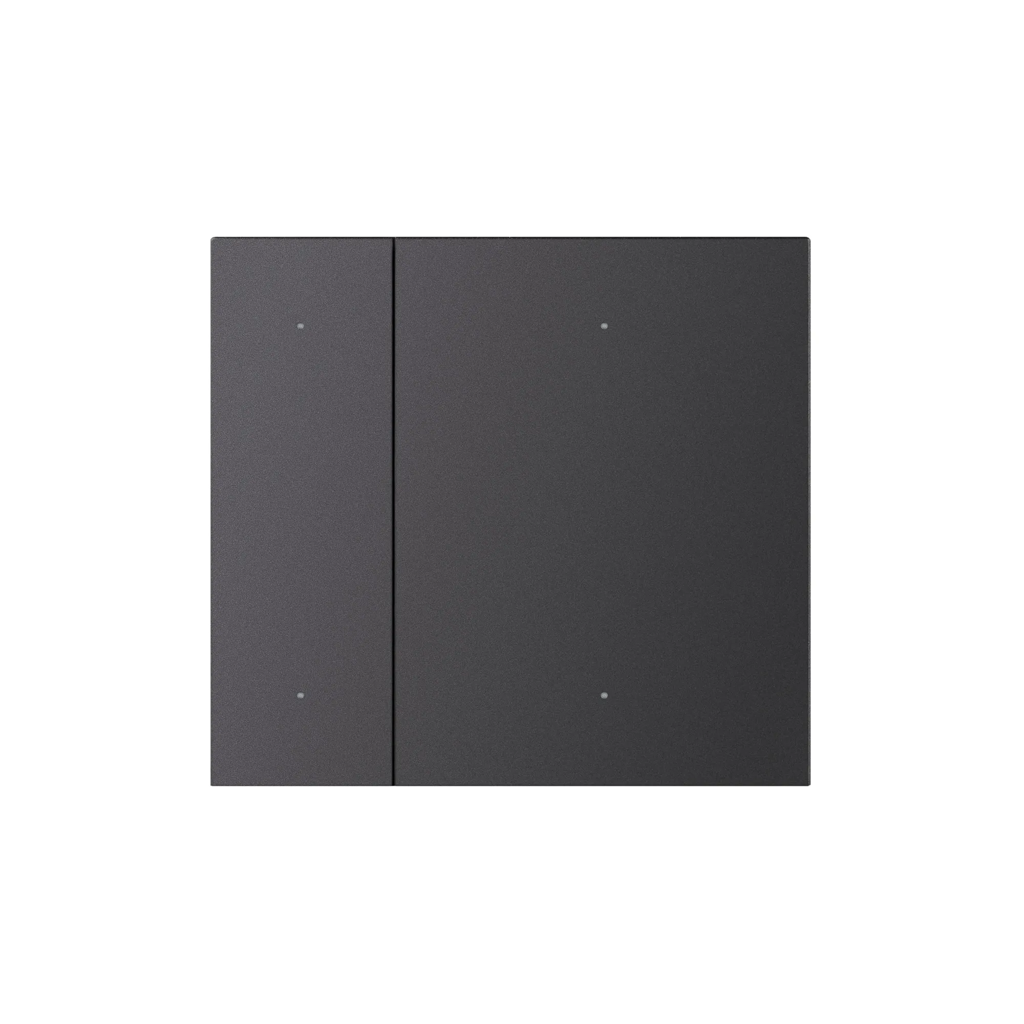 Накладка панели с клавишами для механизма универсальной многофункциональной встраиваемой настенной панели для систем KNX. 2 клавиши. Материал - алюминий, светодиодная индикация. Цвет - темно-серый. Габариты 86x80x3 мм.