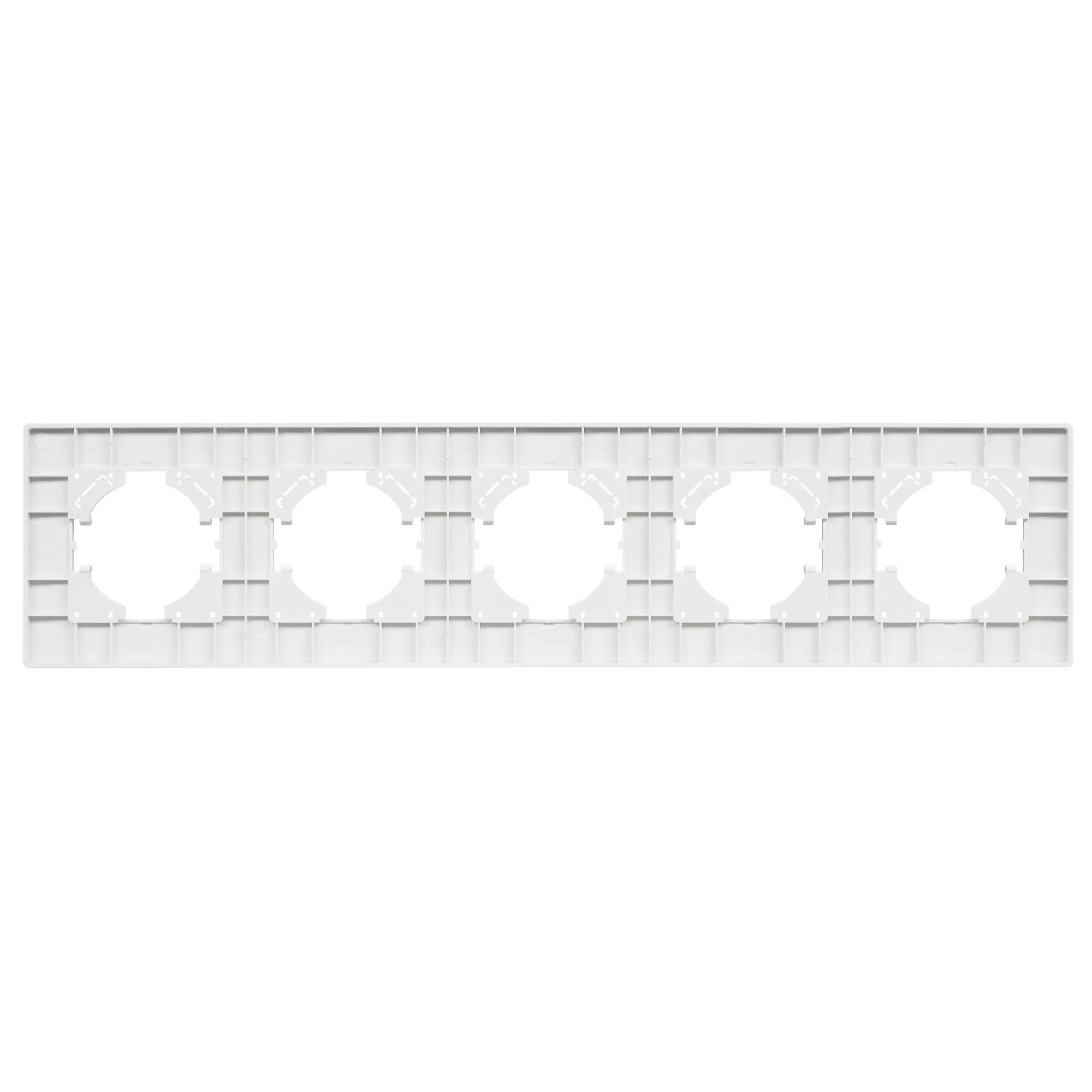 Рамка пластиковая на 5 постов, под встраиваемый механизм. Цвет - черный. Уровень герметичности IP20. Ориентация монтажа - горизонтальная (основным ориентиром служат посадочные выступы для накладки механизма).
