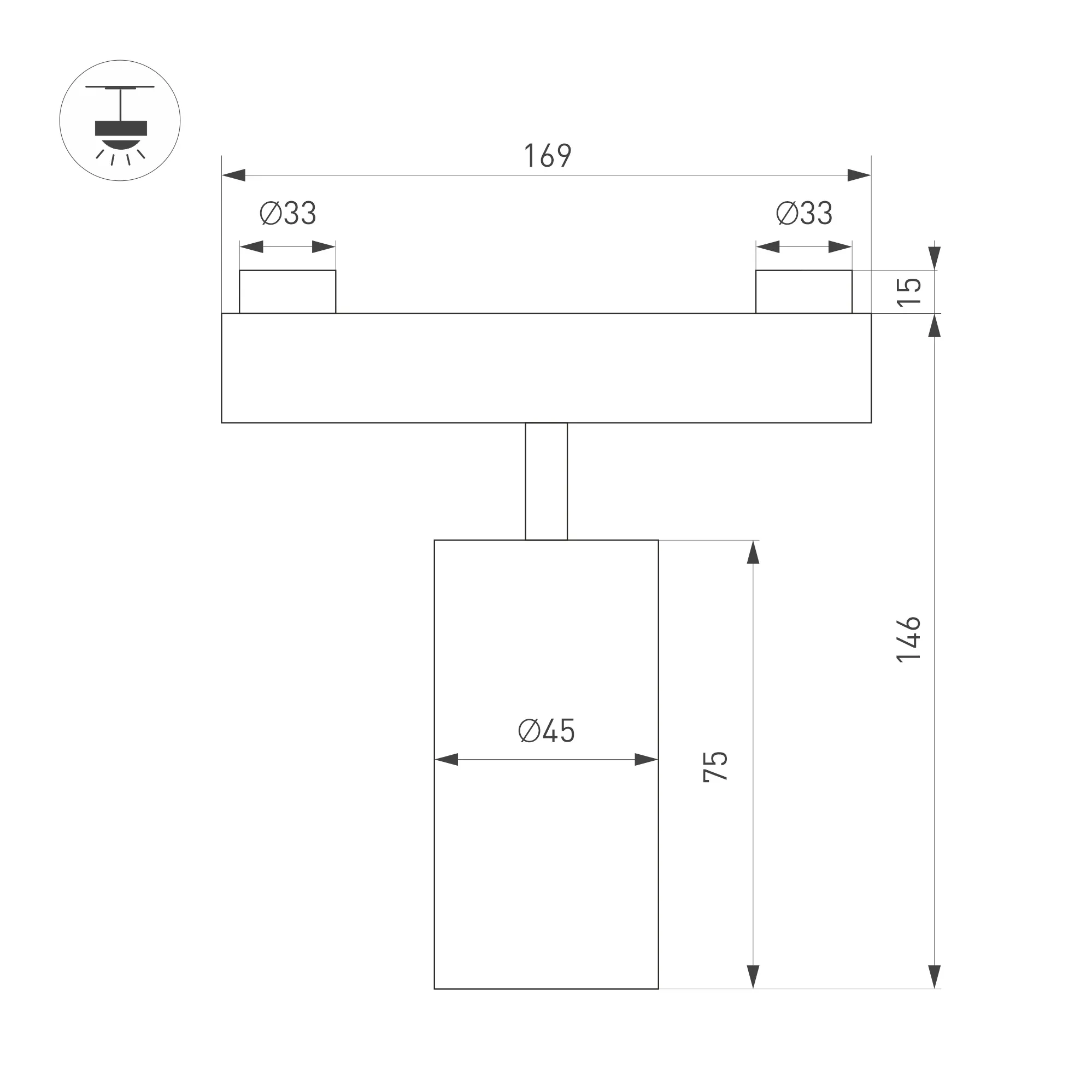 Габариты светоизлучающего модуля: Ø45 х 75 мм