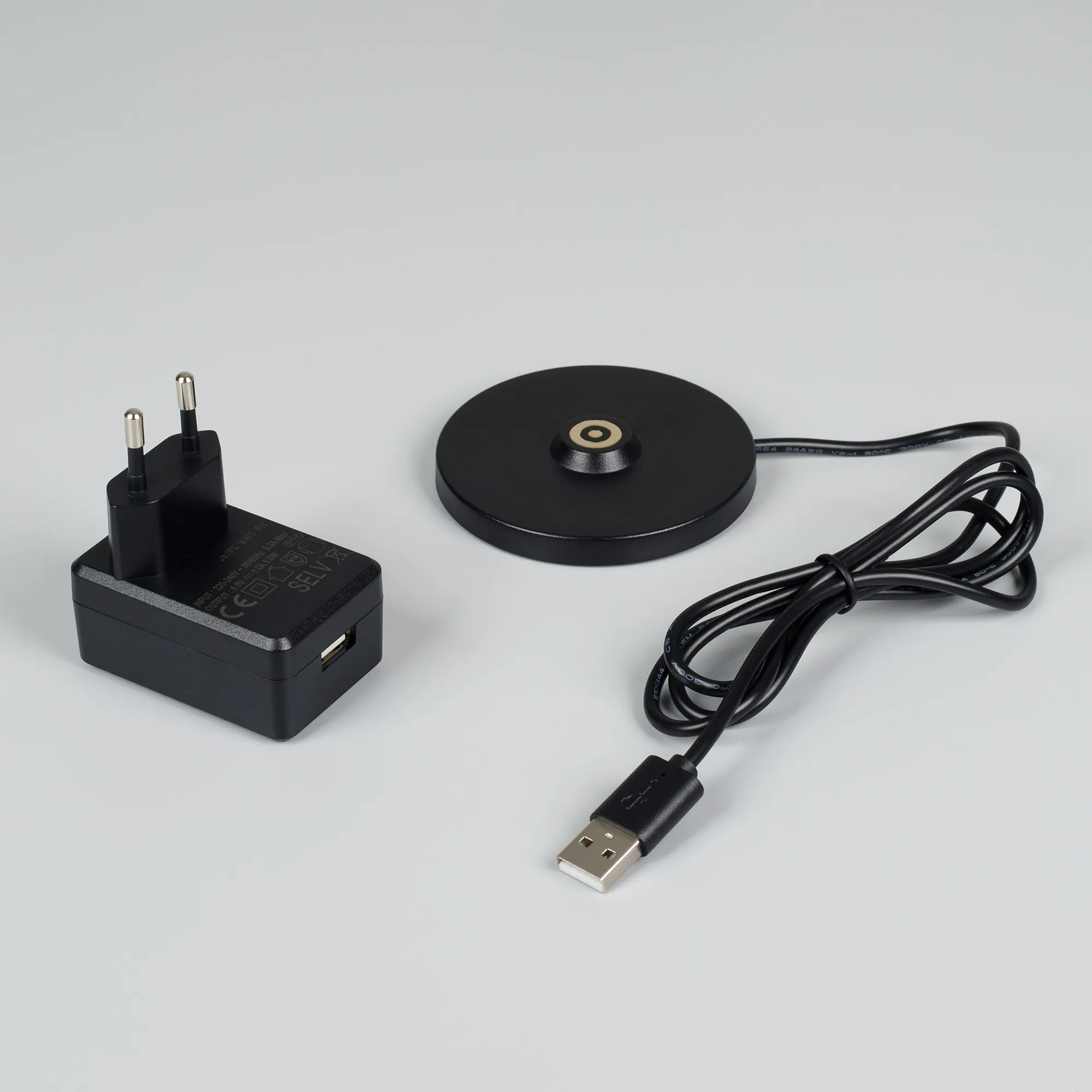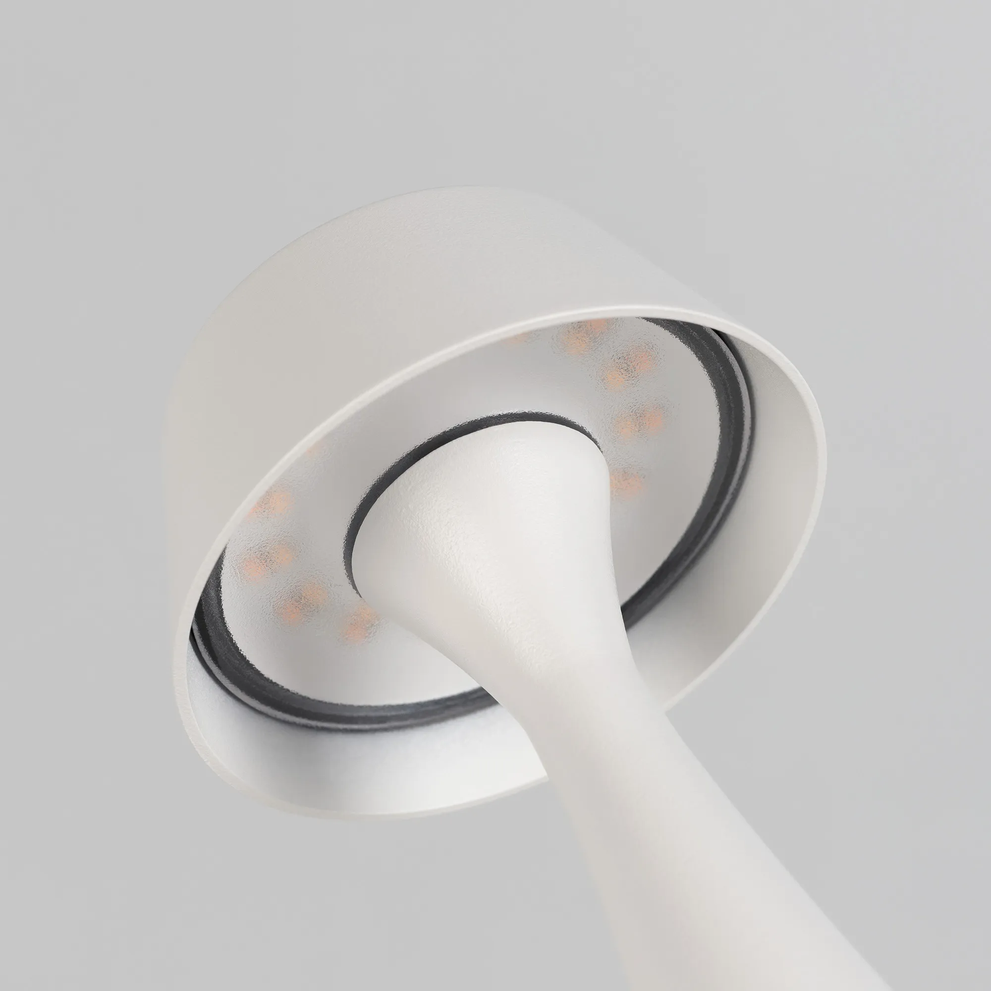 Настольный светильник со встроенным аккумулятором, 2Вт, алюминиевый корпус, цвет зеленый. Цвет ТЕПЛЫЙ БЕЛЫЙ 2200-2700-3000K, св.поток 110-130 лм, CRI(Ra)>80, угол 154°. Размер Ф80x242мм. IP54. Зарядка от сети переменного тока AC220-240V. Тип встроенного аккумулятора 2x2200мАч Li-ion, напряжение батареи 5V