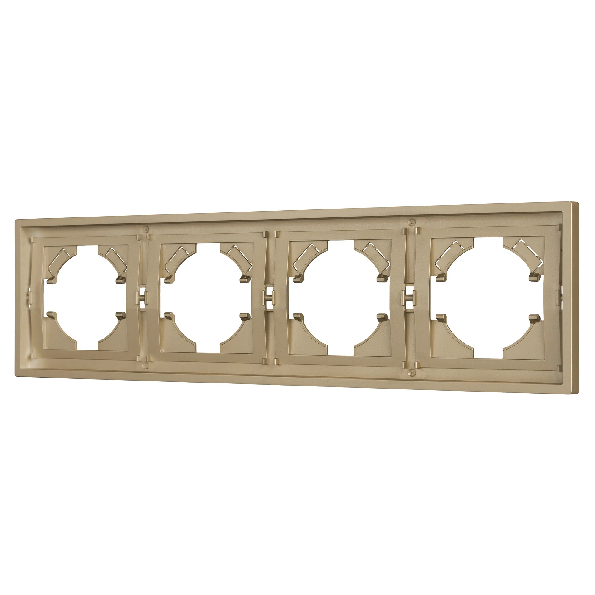 Рамка пластиковая на 4 поста, под встраиваемый механизм. Цвет - матовый песочный, с Soft-Touch покрытием. Уровень герметичности IP20. Ориентация монтажа горизонтальная.